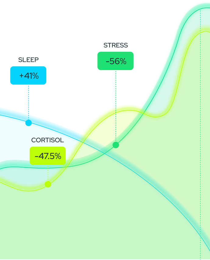 Stress dropped 56% . Sleep improved 41% . All in just 4 weeks