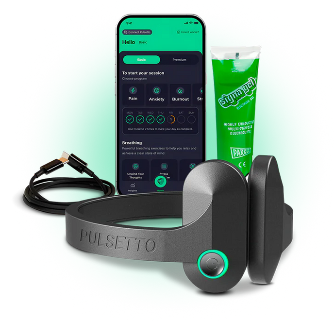 The vagus nerve is the longest cranial nerve in your body, and it plays a crucial role in regulating your mood, stress, digestion, heart rate, and sleep. It’s like your body’s internal switchboard for calm and recovery. Pulsetto gently stimulates this nerve to activate the parasympathetic nervous system, helping you slow down, relax, and restore balance. It’s the same nerve doctors stimulate in clinical settings to treat mood and anxiety disorders, but Pulsetto brings this powerful science home.