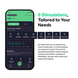 No matter what you're experiencing - stress, anxiety, pain, or trouble sleeping - we've got you covered. Choose from specialized stimulation modes designed to help you feel better, naturally and effortlessly. Just tap, relax, and let your body find its balance.