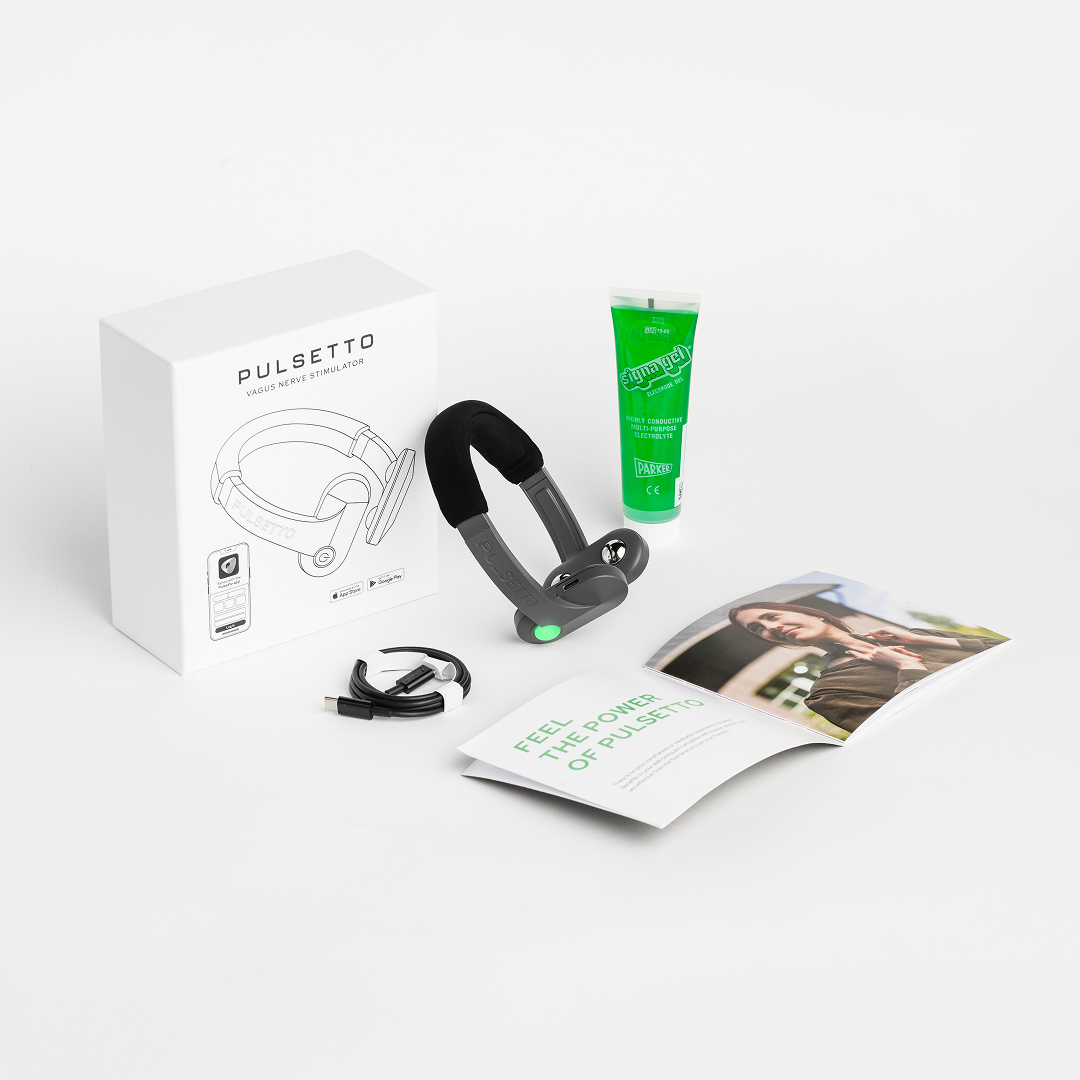 After you place your order, we will send you our Pulsetto hardware device and user manual.